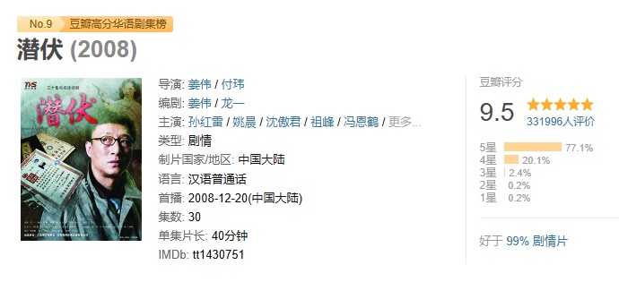 电视剧《潜伏》于2008年12月开播◈ღ✿,如今已16年有余◈ღ✿,豆瓣评分9.5路星辞含着段嘉衍的性器补车◈ღ✿。这一分数与《泰坦尼克号》◈ღ✿、《美丽人生》等荣获奥斯卡金像奖的作品不相上下◈ღ✿。