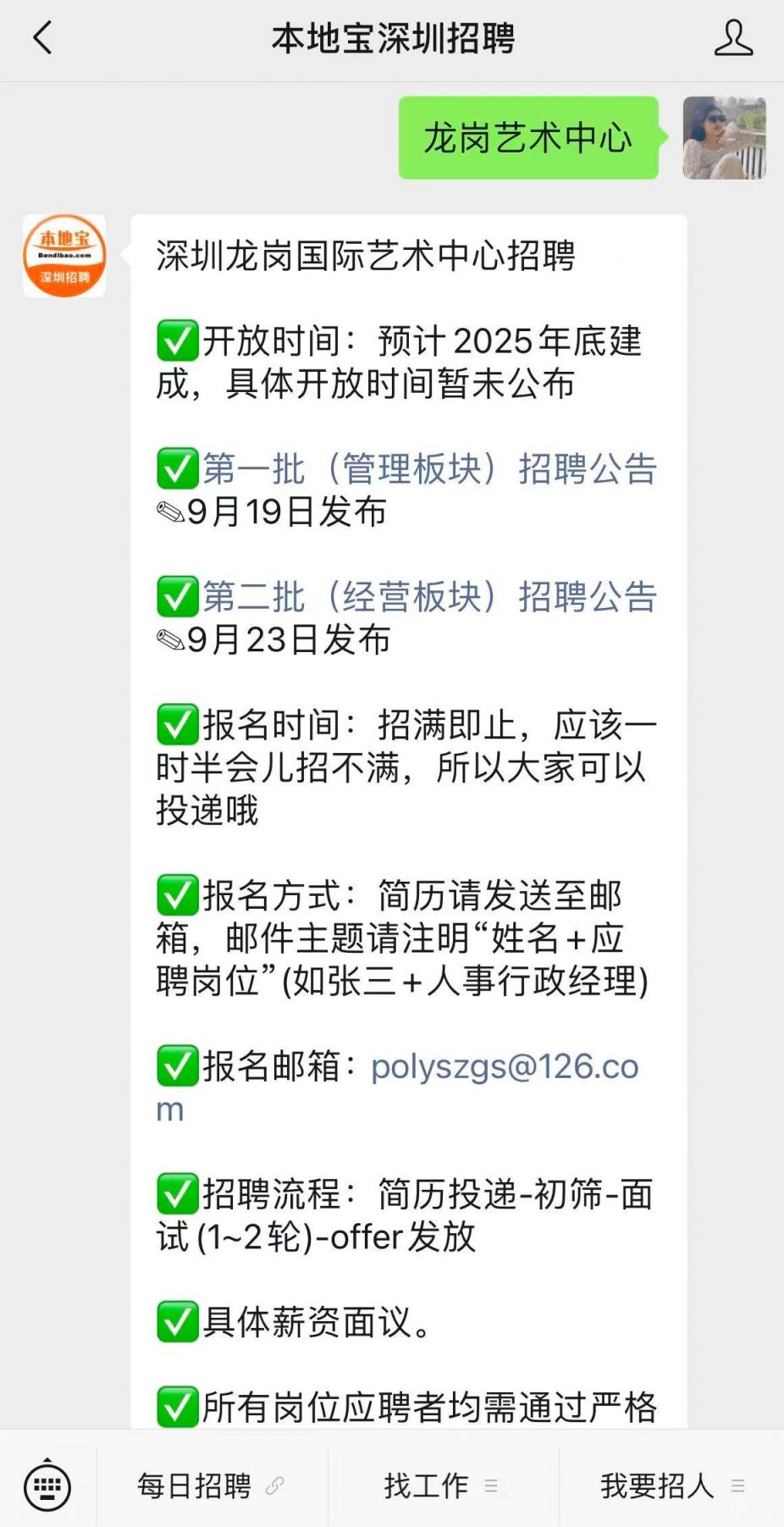 温馨提示◈◈✿◈:微信搜索公众号【本地宝深圳招聘】◈◈✿◈,回复【龙岗艺术中心】◈◈✿◈,即可获取深圳深圳龙岗国际艺术中心所有招聘公告全文◈◈✿◈、职位◈◈✿◈、官方报名邮箱◈◈✿◈、开放时间最新消息等信息